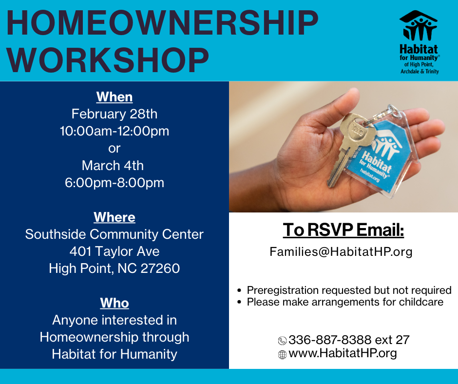 Willing to partner with Habitat by investing 250 hours per adult of sweat equity and attending educational classes.